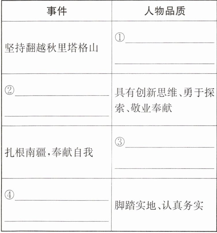 6. 文章围绕黄少英写了哪些事件,展现了他怎样的人物品质?请认真阅读文章,补全下表。