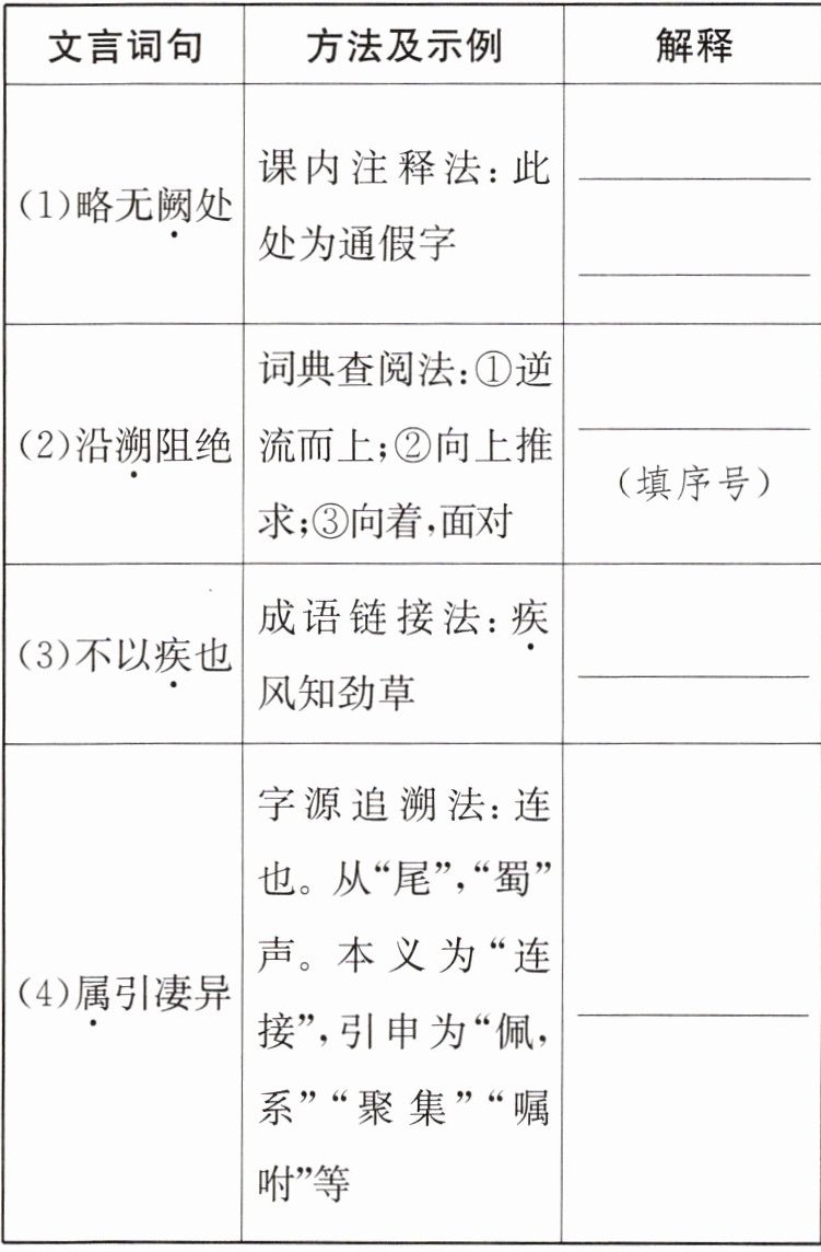 6. [原创试题]参考表格中提示的方法,解释下列句子中加点的词。