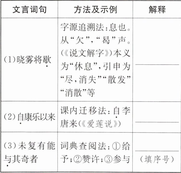 6. [原创试题]参考表格中提示的方法,解释下列句子中加点的词。