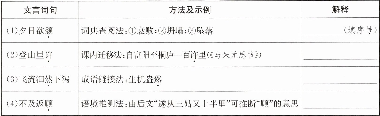 1. [原创试题]参考表格中提示的方法,解释下列句子中加点的词。