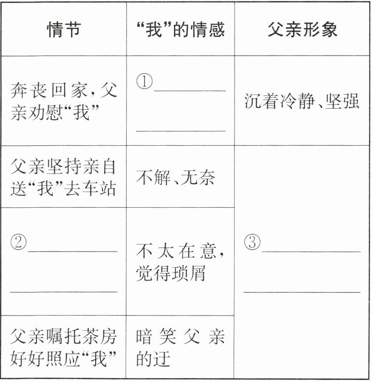 6.[情节梳理]根据课文情节的发展和作者情感的变化,完成下表。