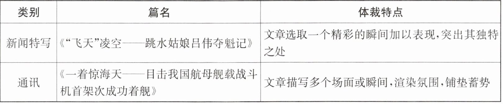 4. 【新闻体裁我来辨】下面是小文同学对本单元相关文章的梳理。你认为材料一可以归为哪一类?请根据材料内容简述理由。