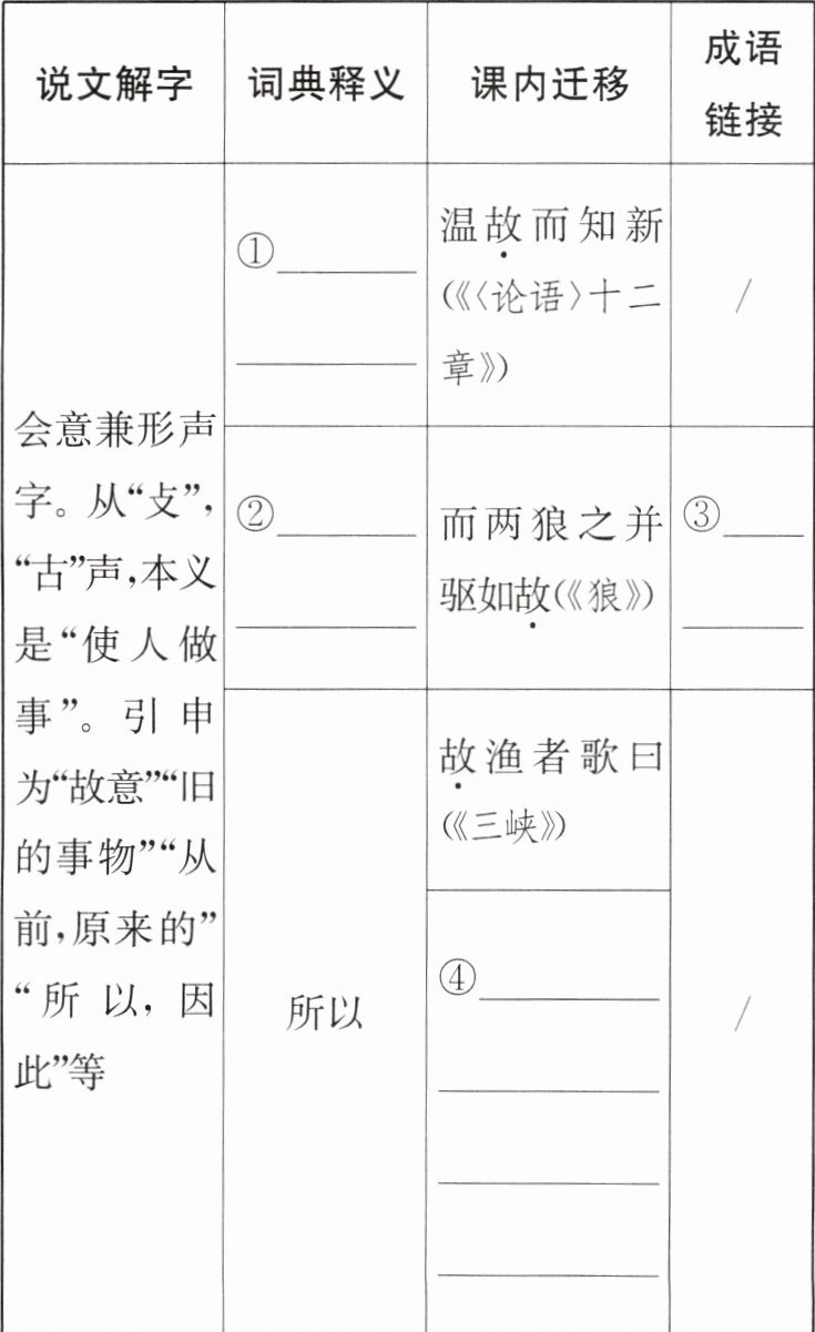 【拓展空间】①学过的知识 ②原来的样子 ③安然如故 ④故君子有不战(《得道多助,失道寡助》)