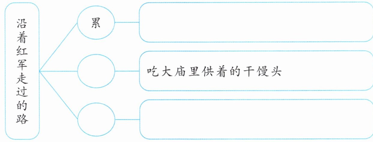 (2)读第④段和第⑤段,在追赶大部队的途中,儿童团员们遇到了哪些困难?他们又是如何克服的?完成下图。
