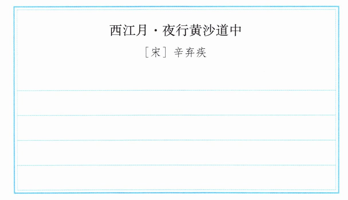 【解析】:本题考查的是对古诗词的背诵和默写能力。根据题目要求,需要背诵并默写辛弃疾的《西江月·夜行黄沙道中》。这是语文六年级人教版上册的一首古诗词,因此,学生应该已经学习过并能够背诵和默写。