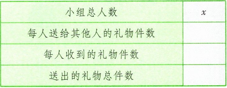 (2)小组总人数×每人收到的礼物件数=送出的礼物总件数