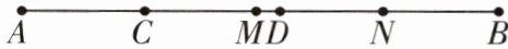 11. 【几何直观】如图,已知 $C$,$D$ 两点将线段 $AB$ 分为三部分,且 $AC:CD:DB = 2:3:4$。若 $AB$ 的中点为 $M$,$BD$ 的中点为 $N$,且 $MN = 10\mathrm{cm}$,求 $AB$ 的长。