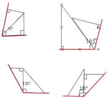 9.75°角可以将30°角和45°角画在一起来实现;105°角可以将45°角和60°角画在一起来实现;120°角可以将90°角和30°角画在一起来实现;15°角可以将45°角和30°角画在一起来实现;画图如图所示