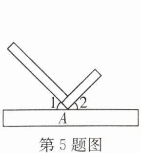 5. [2025济南模拟]在同一平面内,将鲁班曲尺按如图方式摆放在一块木条上。若∠1 = 44°,则∠2 =