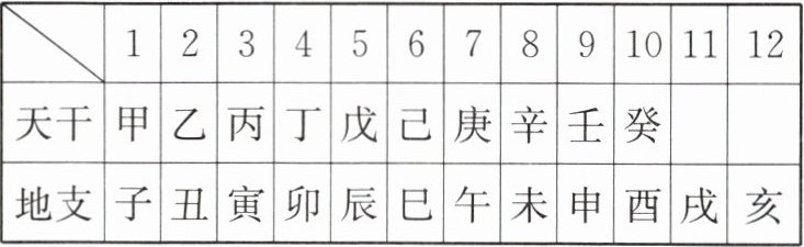 23. 【数学文化】[2024 济南模拟]干支纪年法是中国自古以来就一直使用的纪年方法,干支是天干和地支的总称.干支纪年法的组合方式是天干在前,地支在后,以十天干和十二地支循环配合,每个组合代表××年,60 年为一个循环.我们把天干、地支按顺序排列,且给它们编上序号.天干的计算方法是:年份减 3,除以 10 所得的余数;地支的计算方法是:年份减 3,除以 12 所得的余数.以 2024 年为例: