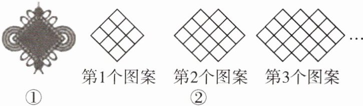 12. [2025 扬州模拟]如图①所示的中国结是我国特有的手工编织品,它是按照一定的规律编制而成的,如图②是其抽离出的平面图形,若其中第 1 个图形中共有 9 个小正方形,第 2 个图形中共有 14 个小正方形,第 3 个图形中共有 19 个小正方形,…;则第 50 个图形中小正方形的个数为(