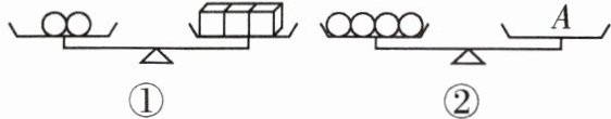 5. 如图,已知图①中天平处于平衡状态,若要使图②中天平平衡,则$A$处应放正方体(