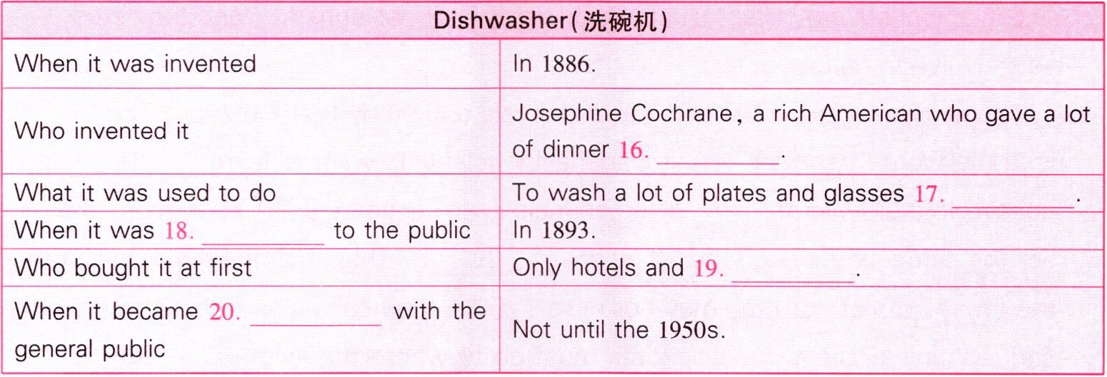 | Who invented it | Josephine Cochrane, a rich American who gave a lot of dinner 16.
