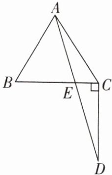 【思路分析】先根据等边三角形的性质得出 $\angle BAC=\angle ACB = 60^{\circ}$,再由 $BC\perp CD$ 可知 $\angle BCD = 90^{\circ}$,进而可得出 $\angle ACD$ 的度数。根据 $AC = CD$ 即可得出 $\angle DAC$ 的度数,进而求得 $\angle BAD$ 的度数。