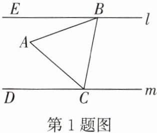 1. [2024 泰安]如图,直线 $l// m$,等边 $\triangle ABC$ 的两个顶点 $B$,$C$ 分别落在直线 $l$,$m$ 上。若 $\angle ABE = 21^{\circ}$,则 $\angle ACD$ 的度数是(