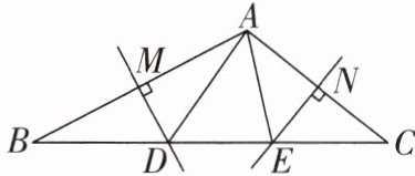 9. 【推理能力】如图,在△ABC中,边AB,AC的垂直平分线分别交BC于点D,E,交AB,AC分别于点M,N.
