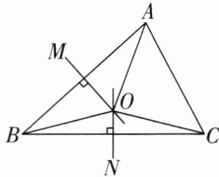 又因为$ON$是$BC$边的垂直平分线,同理可得$OB = OC$。