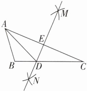 14. 如图,在$\triangle ABC$中,分别以点$A$和点$C$为圆心,大于$\frac{1}{2}AC$的长为半径作弧,两弧相交于点$M$,$N$,直线$MN$与$AC$,$BC$分别相交于$E$和$D$,连接$AD$。若$AE = 3\mathrm{cm}$,$\triangle ABC$的周长为$13\mathrm{cm}$,则$\triangle ABD$的周长是( )