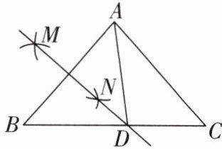 15. [2024 哈尔滨]如图,在$\triangle ABC$中,$AB = AC$,分别以点$A$和点$B$为圆心,大于$\frac{1}{2}AB$的长为半径作弧,两弧相交于$M$,$N$两点,作直线$MN$交$BC$于点$D$连接$AD$,若$\angle B = 50^{\circ}$,则$\angle DAC$的度数为(