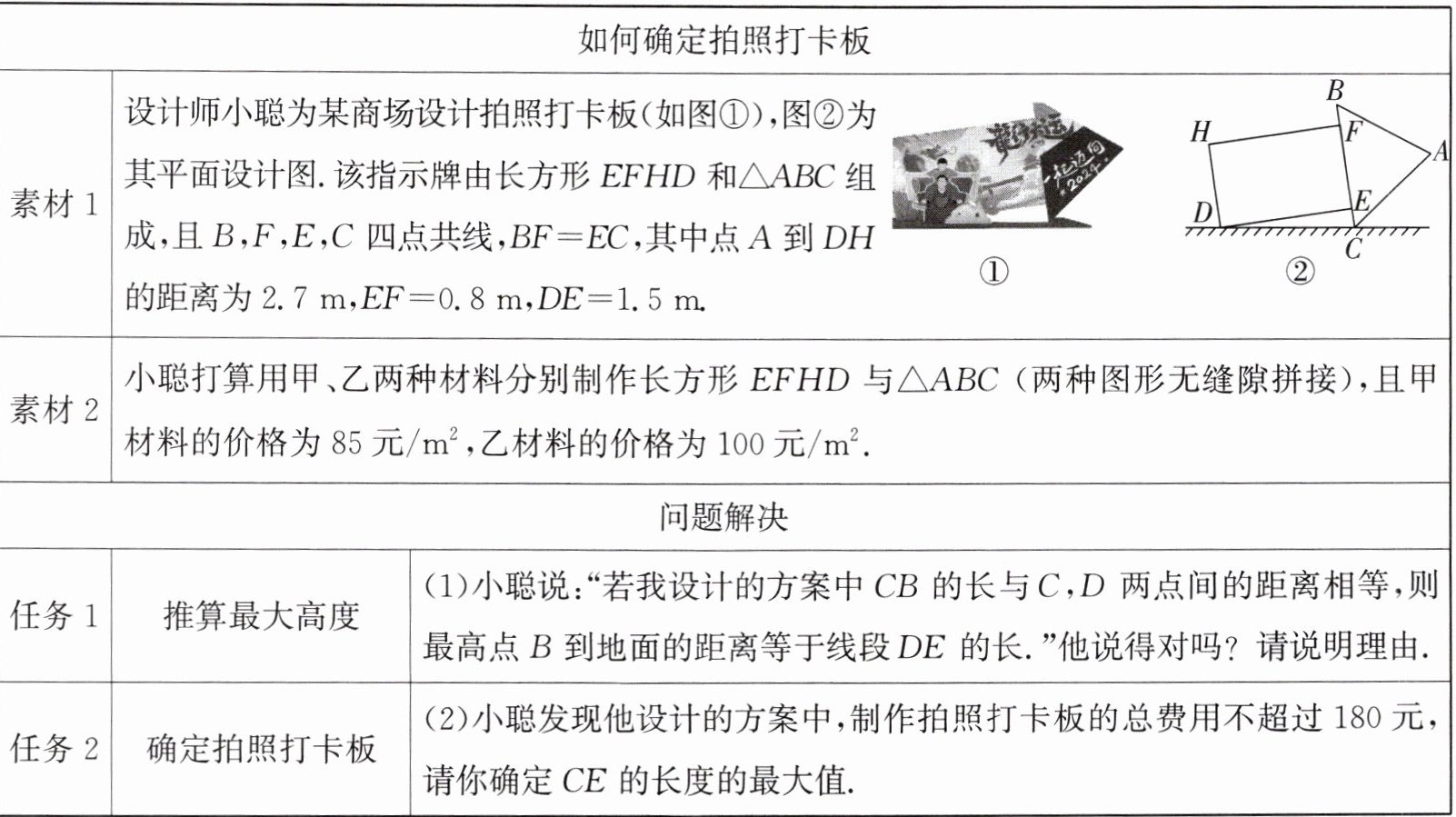 因为总费用不超过$180$元,所以$85×1.2+100×\frac{1}{2}(2x + 0.8)×(2.7 - 1.5)\leq180$。
