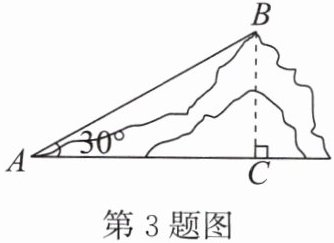3. 如图,某山坡的坡面 $AB = 200m$,坡角 $\angle BAC = 30^{\circ}$,则该山坡的高 $BC$ 为
