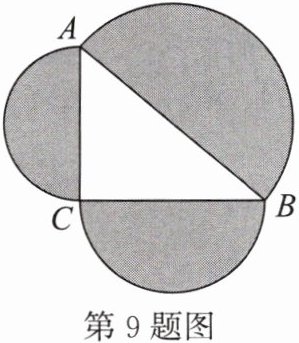 9. 如图,以$Rt\triangle ABC$的三边为直径分别向外作半圆,若斜边$AB = 3$,则图中阴影部分的面积为(