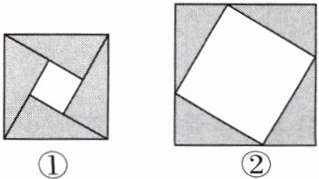 11. 【数学文化】[2024眉山]如图,图①是北京国际数学家大会的会标,它取材于我国古代数学家赵爽的“弦图”,是由四个全等的直角三角形拼成。若图①中大正方形的面积为$24$,小正方形的面积为$4$,现将这四个直角三角形拼成图②,则图②中大正方形的面积为(