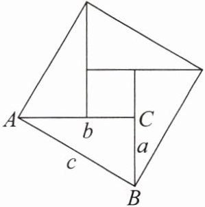 大正方形的面积也可以表示为四个全等直角三角形的面积与中间小正方形面积之和。