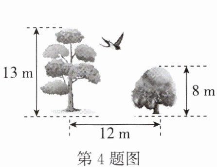4. 如图,有一只小鸟从大树顶飞到小树顶上,它飞行的最短路程是