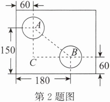 2. 如图是一个外轮廓为长方形的机器零件平面示意图,根据图中的尺寸(单位:mm),计算两圆孔中心$A$和$B$的距离为(