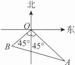 由于甲轮船向南偏东$45^{\circ}$方向航行,乙轮船向南偏西$45^{\circ}$方向航行,所以$\angle AOB = 90^{\circ}$。