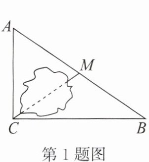 1. 如图,公路$AC$,$BC$互相垂直,$M$为公路$AB$的中点,为测量湖泊两侧$C$,$M$两点间的距离,工人师傅测得$AC = 3$km,$BC = 4$km,则$M$,$C$两点间的距离为(