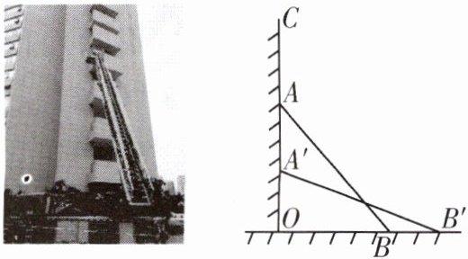【深入探究】(2)消防员接到命令,按要求将云梯从顶部$A$下滑到$A'$位置上(云梯长度不改变),则底部$B$沿水平方向向右滑动到$B'$位置上,若$AA' = 8$ m,求$BB'$的长度。