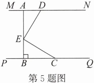 5. 如图,$MN// PQ$,$AB\perp PQ$,点$A$,$D$,$B$,$C$分别在直线$MN$与$PQ$上,点$E$在$AB$上,$AD + BC = 7$,$AD = EB$,$DE = EC$,则$AB=$