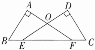 6. 如图,已知$\angle A=\angle D = 90^{\circ}$,$E$,$F$在线段$BC$上,$DE$与$AF$交于点$O$,且$AB = CD$,$BE = CF$. 求证:$Rt\triangle ABF\cong Rt\triangle DCE$.