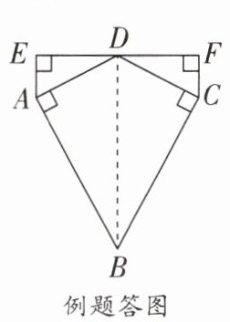 例 如图,$AB = BC$,$\angle BAD=\angle BCD = 90^{\circ}$,$D$是$EF$上一点,$AE\perp EF$于点$E$,$CF\perp EF$于点$F$,$AE = CF$. 求证:$Rt\triangle ADE\cong Rt\triangle CDF$.