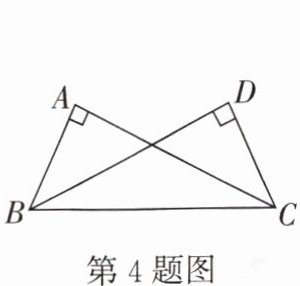4. 如图,已知$\angle A=\angle D = 90^{\circ}$,要使用“斜边、直角边”证明$\triangle ABC\cong \triangle DCB$,应添加条件: