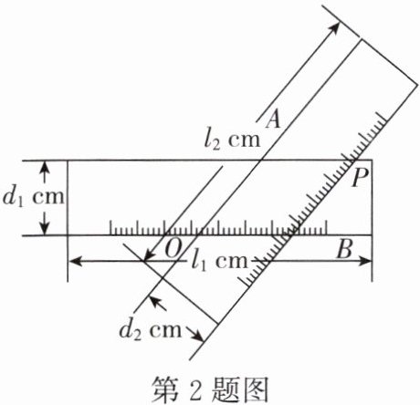 2. [2024常州]如图,在纸上画有∠AOB,将两把直尺按图示摆放,直尺边缘的交点P在∠AOB的平分线上,则(