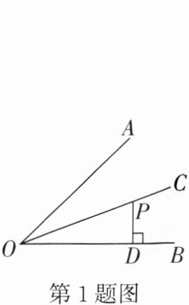 1. [2024青海]如图,OC平分∠AOB,点P在OC上,PD⊥OB,PD=2,则点P到OA的距离是(