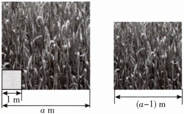 10. 【应用意识,运算能力】[2024呼和浩特]某研究人员对分别种植在两块试验田中的“丰收1号”和“丰收2号”两种小麦进行研究,两块试验田共产粮$1000kg$,种植“丰收1号”小麦的试验田产粮量比种植“丰收2号”小麦的试验田产粮量的$1.2$倍少$100kg$,其中“丰收1号”小麦种植在边长为$a m(a > 1)$的正方形去掉一个边长为$1m$的正方形蓄水池后余下的试验田中,“丰收2号”小麦种植在边长为$(a - 1)m$的正方形试验田中。