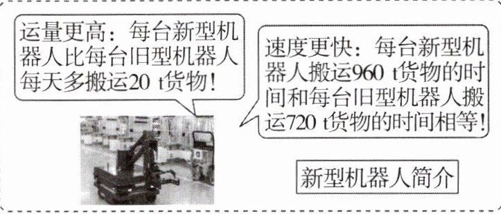 4. 【教材P54“思考”改编】“一带一路”科技创新行动计划,促进全球人工智能健康有序安全发展,某科技公司生产了一批新型搬运机器人,打出了如图所示的宣传,根据该宣传,求新型机器人每天搬运的货物量。