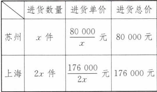 根据表格中反映出来的数量关系可以根据进货单价建立方程。