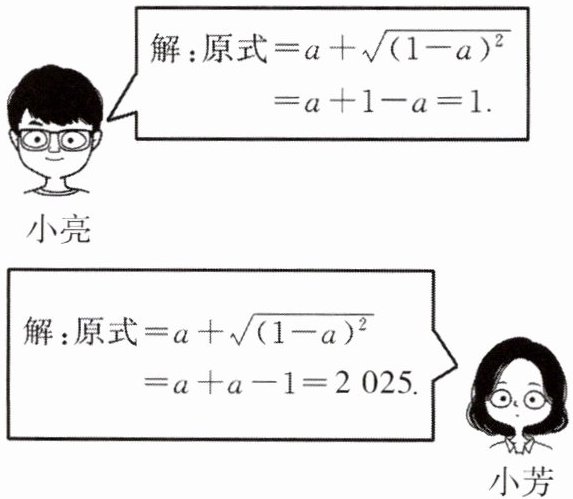 (小芳解:原式$=a+\sqrt{(1 - a)^{2}}=a + a - 1 = 2025$)