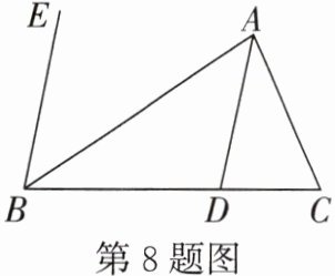 8. 如图,分别过△ABC的顶点A,B作AD//BE.若∠CAD=25°,∠EBC=80°,则∠ACB的度数为(