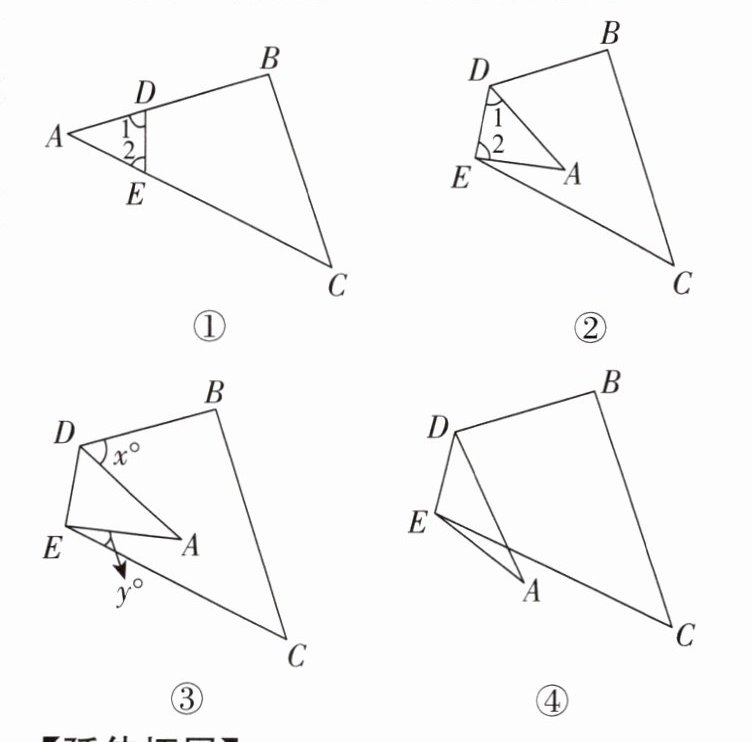 (3)图③是由图①的△ABC沿DE折叠得到的,如果∠A=30°,则x+y=_______.