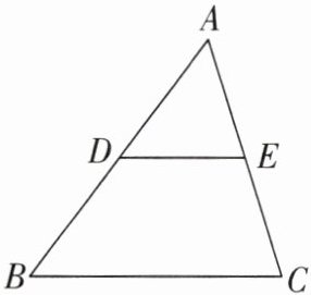 材料:连接三角形两边中点的线段叫作三角形的中位线。如图,在$\triangle ABC$中,$D$,$E$分别是$AB$,$AC$边的中点,则线段$DE$是$\triangle ABC$的中位线。