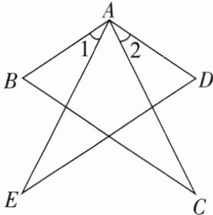 6. 如图,$ AC = AE $,$ \angle 1 = \angle 2 $,$ AB = AD $。求证:$ \triangle BAC \cong \triangle DAE $。