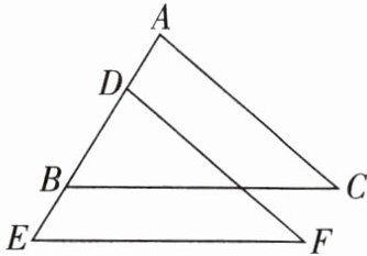 因为$AC// DF$,所以$\angle A=\angle EDF$。