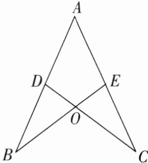 已知$\angle B=\angle C$,$\angle BOD = \angle COE$(对顶角相等),$BD = CE$。