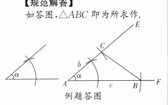 例 如图,已知$\angle \alpha$和线段$b$,$c$($b\lt c$)。